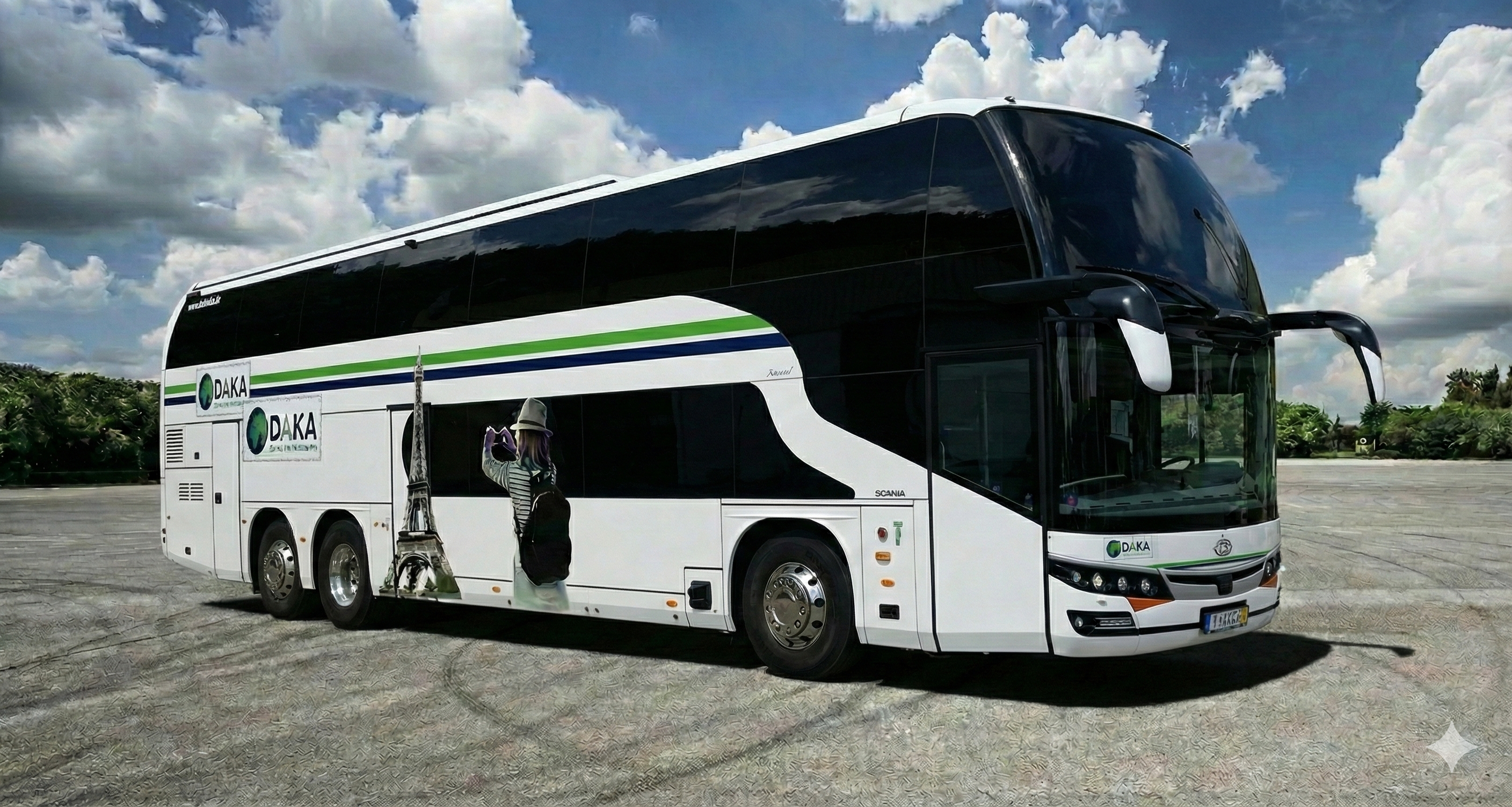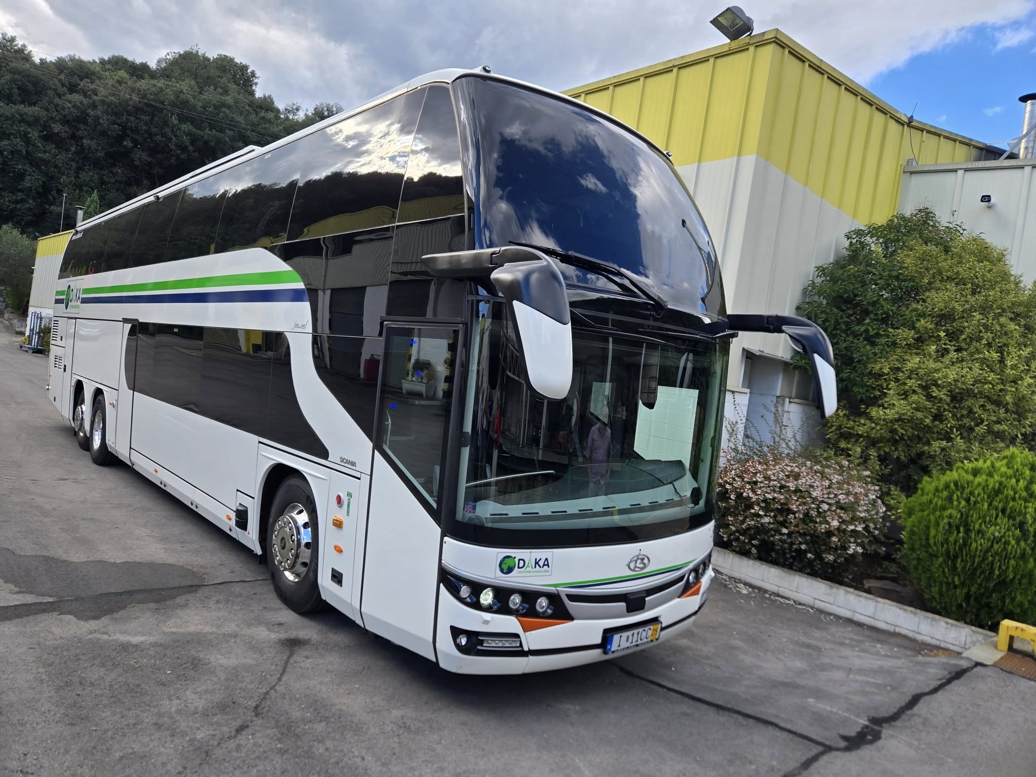 Luxusný poschodový 89 miestny moderný autobus značky Scania Beulas elegantnej bielej farby s pohodlnými polohovateľnými sedadlami vyrobený v roku 2025. Ako privítanie od nás dostanete welcome drink v autobuse v podobe praktickej fľaškovej minerálnej vody zadarmo.