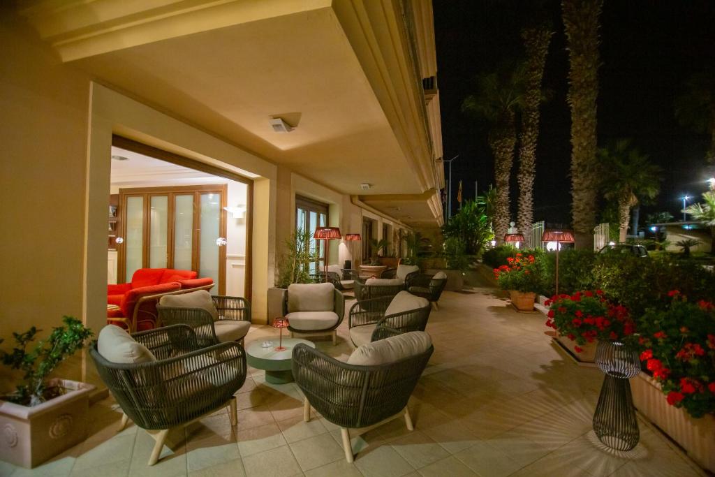 Historický hotel nachádzajúci sa v centre mestečka Letojanni na Sicílii, priamo pri pobreží, len pár krokov od pláže a s jednoduchým prístupom k reštauráciám, obchodom a zastávkam verejnej dopravy. Izby sú klimatizované a vybavené súkromnou kúpeľňou s bidetom, chladničkou, TV, denným upratovaním a niektoré majú balkón alebo výhľad na more. Nechýbajú zatemňovacie závesy, minibar, pracovný stôl a bezplatné Wi‑Fi. Hotel ponúka reštauráciu a bar, úschovňu batožiny, concierge služby, lounge priestor a recepciu s obmedzenými hodinami. Je situovaný priamo na pláži a poskytuje pokojnú atmosféru na oddych. Je čiastočne bezbariérový, disponuje výťahom. Jeho poloha na hlavnom námestí Piazza Durante v centre mesta predurčuje na návštevu kaviarní, malých obchodov, miestnych služieb a zažitia atmosféry typickej pre sicílske prímorské mestečká.