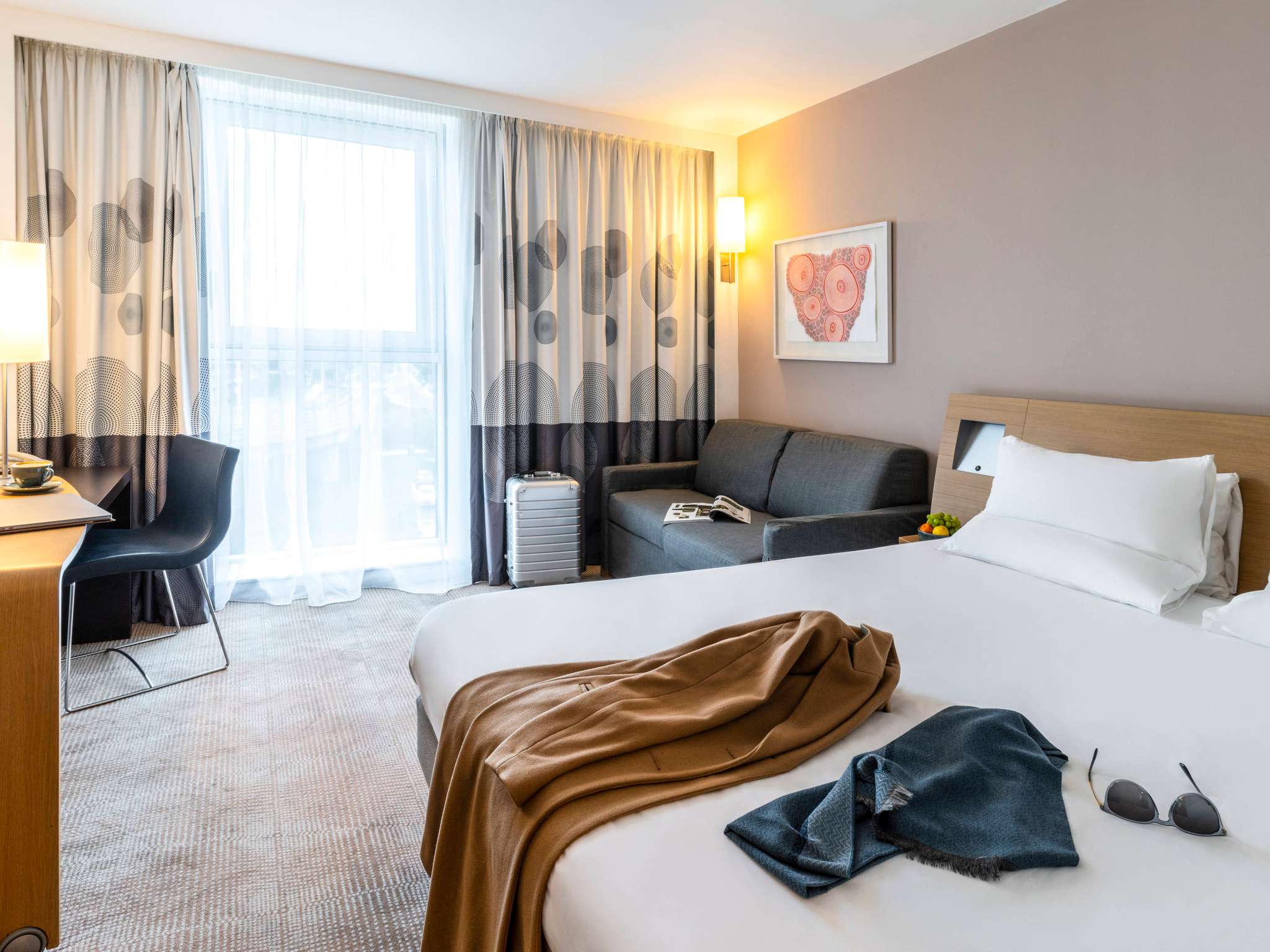 Hotel ponúka širokú škálu služieb typickú pre triedu Novotel, zameranú na pohodlie a rekreáciu: k dispozícii je hotelová reštaurácia a bar, ktoré podávajú modernú kuchyňu a nápoje. Raňajky sú formou bufetu; hostia môžu využiť vyhrievaný krytý bazén, saunu a parný kúpeľ, k dispozícii je aj fitness centrum; hotel disponuje flexibilnými zasadacími miestnosťami a bezplatnou Wi-Fi s vysokou rýchlosťou pripojenia v celom areáli. Recepcia je dostupná 24 hodín denne. Izby sú vybavené prémiovými posteľami (často Queen/King size) s možnosťou výberu vankúšov, súkromnou kúpeľňou (vaňa alebo sprcha) so sušičom vlasov a hotelovou kozmetikou, TV s plochou obrazovkou, pracovným stolom. Súčasťou vybavenia je čajový/kávový set, minibar/mini-chladnička a bezpečnostný trezor.