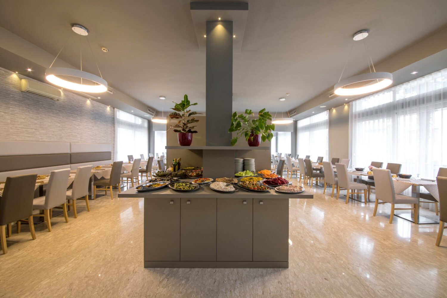 • večera pozostáva z 3-chodového menu, ktoré zahŕňa predjedlo, hlavné jedlo s prílohou a dezert, pričom k dispozícii je aj zeleninový bufet.