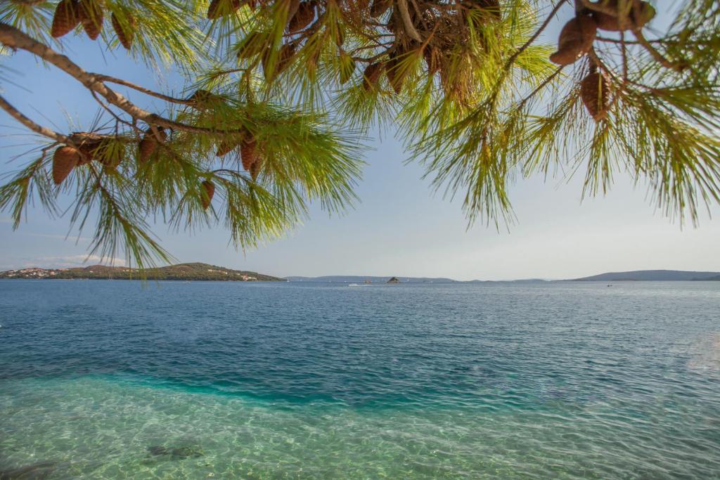 Amadria Park sa pýši 500 metrov dlhým pobrežím, ktoré je čiastočne štrkové a čiastočne dláždené, s priamym prístupom k moru. Pláž je vybavená sprchami, plážovým barom a à la carte reštauráciou. Pre zábavu sú k dispozícii nafukovacie vodné atrakcie(za príplatok). Ležadlá a slnečníky si možno prenajať, aby ste si mohol vychutnať maximálne pohodlie počas celého dňa. Popri pláži vedie promenáda, ktorá smeruje do starobylej rybárskej dedinky Seget.