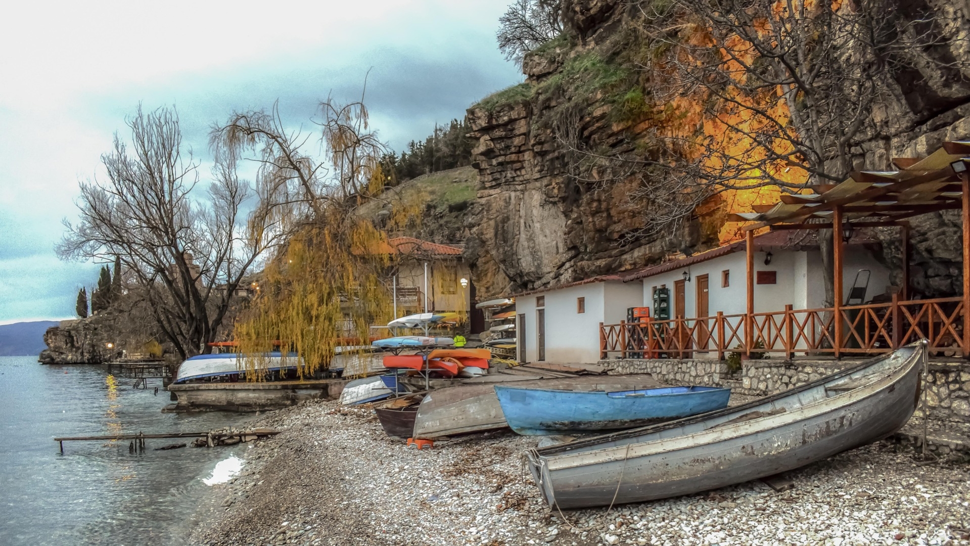 Celý deň strávime pri jazere Ohrid. Ohridské jazero je balkánsky poklad – jedno z najstarších a najčistejších jazier na svete. Má krištáľovú vodu, ktorá je miestami až neskutočne priezračná, a je obklopené horami, takže celé pôsobí ako pokojná prírodná misa. Samotné mesto Ohrid je historický skvost: úzke uličky, drevené domy, starý amfiteáter, pevnosť Samuela a kopec kostolov. Najikonickejší je sv. Ján Kaneo – ten kostolík na útesoch nad vodou, ktorý vyzerá ako namaľovaný. Ak to počasie a čas dovolia, môžete sa neskôr okúpať alebo vydať loďkou k skanzenu na vode k Zátoke kostí